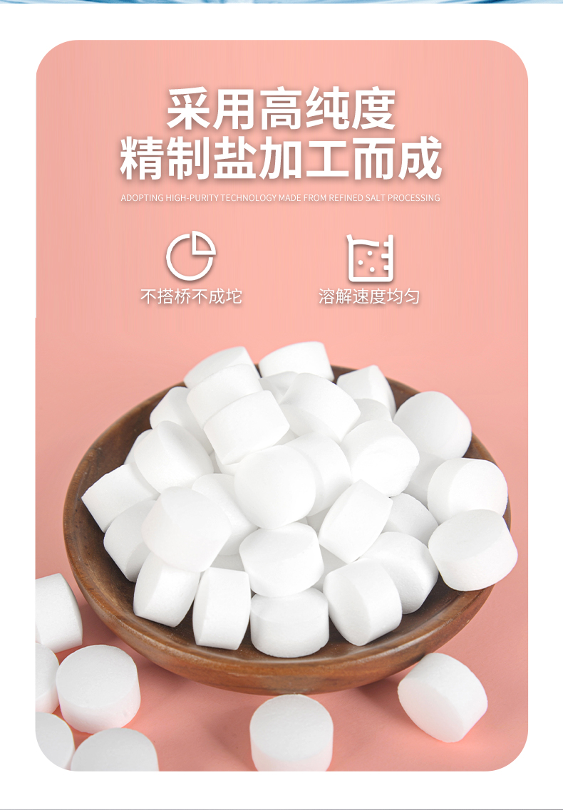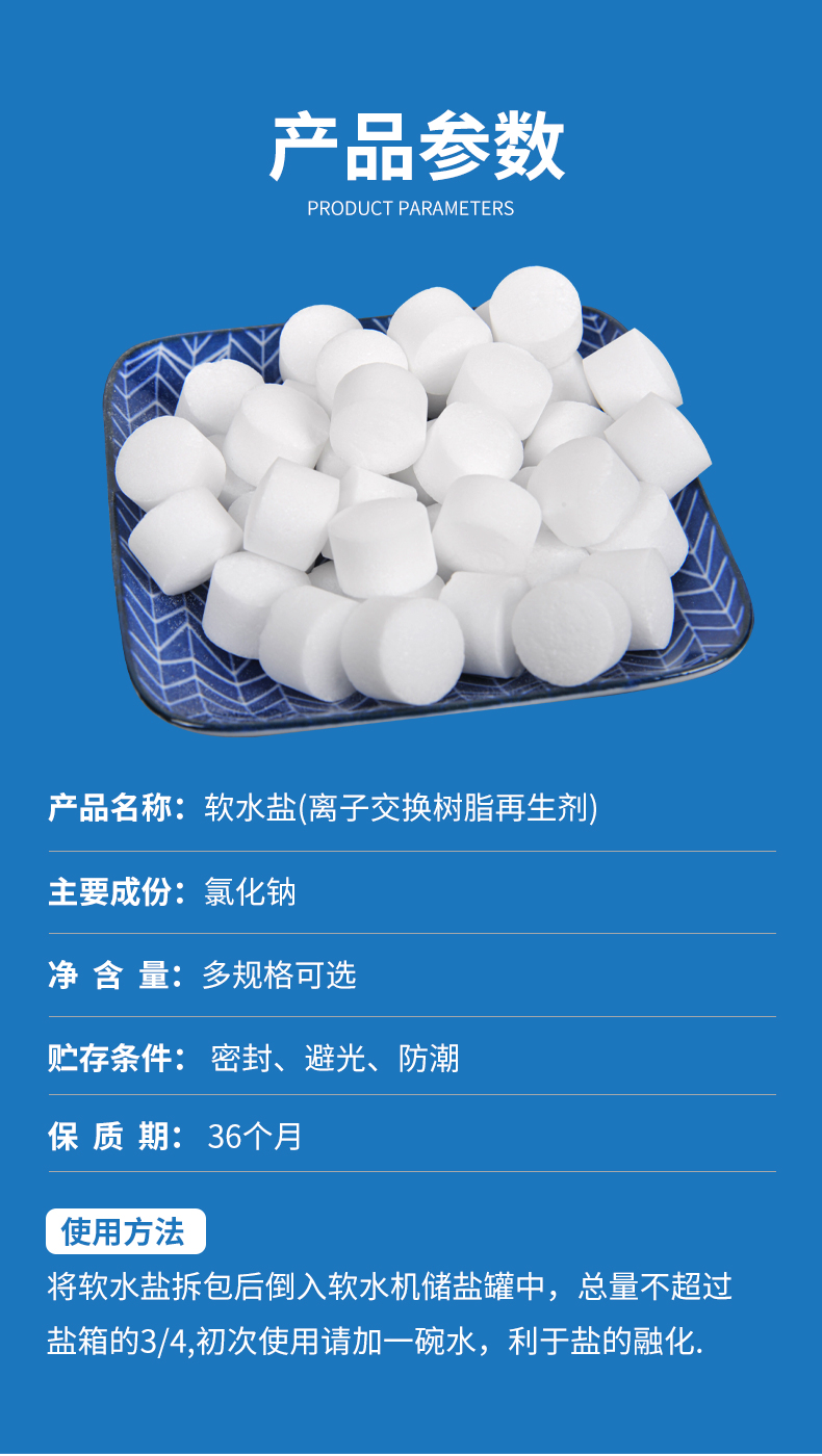 使用方法:將軟水鹽拆包后倒入軟水機(jī)儲(chǔ)鹽罐中,總量不超過鹽箱的3/4,初次使用請(qǐng)加一碗水,利于鹽的融化。